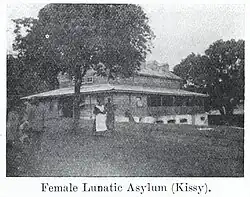 Kissy was founded in 1816 to provide accommodation for recaptives, liberated enslaved Africans, who had been brought to Freetown by the British Royal Navy West Africa Squadron.[1] The Kissy Lunatic Asylum, the first Lunatic Asylum established in colonial Sub-Saharan Africa, was established here in 1820. It originally catered for both mentally and physically ill people who could not look after themselves.[2]: 28 The Asylum was classified as a Colonial hospital in 1844.[2]: 28 As the British expanded their colonial holdings, the catchment area of the asylum came to encompass the whole of British West Africa.[2]: 28