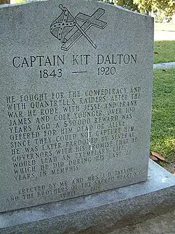 Kit Dalton is buried at Elmwood Cemetery, in the section known as Confederate's Rest.[2]