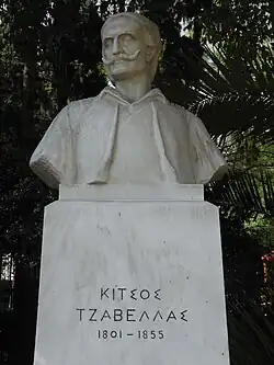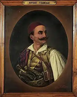 Kitsos Tzavelas (Greek: Κίτσος Τζαβέλας; 1800–1855) was a Souliot fighter and general of the Greek rebels in the Greek War of Independence. After the establishment of the Kingdom of Greece he entered Greek politics and served as Minister of Military Affairs (1847-1848) and as Prime Minister (1847).
