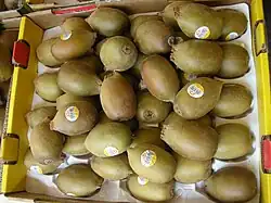 In 1997 the marketing board rebranded to Zespri.[21] All New Zealand kiwifruits are marketed under the brand-name label Zespri. The branding move is also intended to distinguish New Zealand kiwifruit from other fruit and prevent other companies from gaining benefit from Zespri's activities. Zespri International Ltd. is owned by 2,700 local growers through Zespri Group Ltd, which was established in 2000.[2] Zespri has the role of promoting and selling kiwifruit in overseas markets, as well as establishing regulations on which kiwifruit can be sold in the export markets.[2] Zespri has been used for marketing of all green and gold cultivars of kiwifruit from New Zealand since 2012.[20][22]