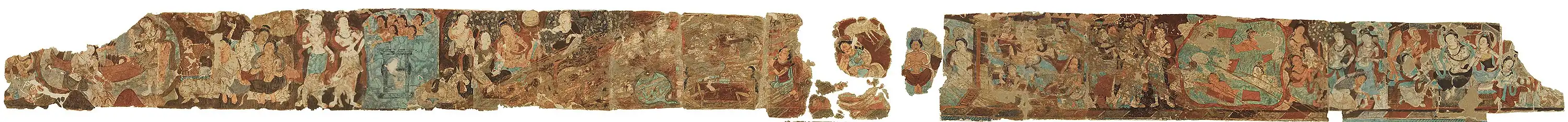 The Cave of the Hippocampi (Cave 118) was visited and photographed by the Third German Expedition of 1906–1907, and by the French expedition of Paul Pelliot in 1907.[27] Large portions of the murals were removed and sent to Germany, especially by von Le Coq in 1914, who removed the lunettes and the sides of the vault.[29]