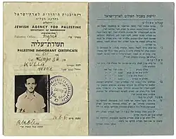 A few weeks before the German invasion of Yugoslavia, a small part of the refugees had certificates of Youth Aliya, the Zionist women's organization WIZO, and about 50 individual certificates. Among the about 200 to 280 people (the exact number is not known) were mostly young people aged 15 to 17 years, some younger children and girls who had already crossed the age limit of Youth Aliya, some adult caregivers of youth groups, and a few elderly had vouched for the relatives. One of the rescued youngsters, Ernest Löhner, was appointed as a leader of the group.[5] They got Yugoslav interim passports issued, and had to get visas for Greece, Turkey and Syria. Young people were newly clothed by WIZO and were provided with food and other things necessary for the journey.[6][7]