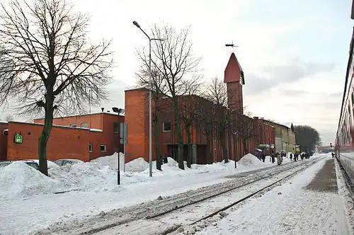 Klaipėda railway station (Lithuanian: Klaipėdos geležinkelio stotis) is a Lithuanian Railways station in Klaipėda. It is located at the northern part of the old town of the city. The current building was built in 1983. "Railroad station - a facility comprising ticket office, platforms, etc. for loading and unloading train passengers and freight".[1]