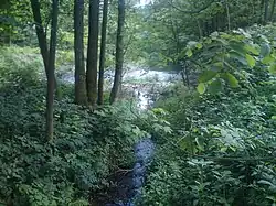 The Kleine Steina rises at about 690 m (2,260 ft) between the Schindelkopf mountain and the Spießerklippe crags on the ridge of Auf dem Acker. It initially flows in a westerly direction, but later swings south before emptying into the River Sieber near the small settlement of Aschenhütte, not far from the mouth of the Große Steinau. In the upper reaches of the Kleine Steinau it is also called the Schindelgraben, although it is not clear from the maps at which point the name changes.