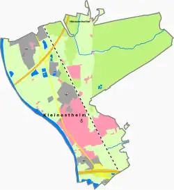 Kleinostheim's four Ortsteile are Kleinostheim, Waldstadt, Industriegebiet West and Wingert. The later three, however, are not officially recognized.[3]