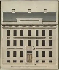 The building was destroyed in the Copenhagen Fire of 1795 but rebuilt 1797–98 by Joseph Guione.[1] It was expanded with an extra floor in 1880.[2]