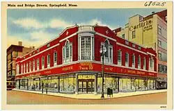 In 1912, Kresge incorporated the S.S. Kresge Company in Delaware with 85 stores.[22] In 1916, Kresge incorporated a new S.S. Kresge Company in Michigan and took over the operations of the original company, becoming the modern day Kmart company. The company was first listed on the New York Stock Exchange on May 23, 1918.[23] During World War I, Kresge experimented with raising the limit on prices in his stores to $1.[24] By 1924, Kresge was worth approximately $375 million and owned real estate of the approximate value of $100 million.[25][26] Growth early in the 20th century remained brisk, with 257 stores in 1924, rising to 597 stores by 1929. Kresge retired as president in 1925, continuing as the company's chairman.[22] The Great Depression reduced profitability and resulted in store closings, but the number rose to 682 in 1940. After the war, shopping patterns changed and many customers moved out of the cities into the suburbs.