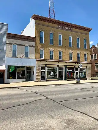 The Knights of Pythias Building and Theatre, also known as K. of P. Building, is a historic building located at Greensburg, Decatur County, Indiana. It was built in 1899 by the Knights of Pythias, and is a three-story brick building that includes Early Commercial and Italianate style design elements. A four-story theater was added to the original building in 1908. The theater closed in 1958.[2]: 2, 4