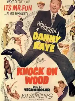 Knock on Wood is a 1954 American comedy thriller film starring Danny Kaye and Mai Zetterling. Other actors in the film include Torin Thatcher, David Burns, and Leon Askin. The film was written and directed by Melvin Frank and Norman Panama, with songs by Kaye's wife, Sylvia Fine. Location shooting in England took place around London as well as Maidenhead and Marlow.[2][3]