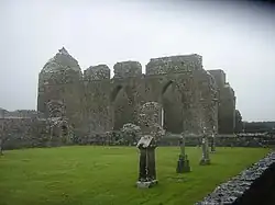 Knockmoy Abbey (Irish: Mainistir Chnoc Muaidhe),[2] also known as The Monastery of the Hill of Victory (Latin: Monasterium Collis Victoriæ);[3] and as Porta Magna (English: Great Door)[4] and Teampollandorusmoir (English: The Chapel with the Big Door)[4] after the dissolution of the monasteries,[5] is a ruined Cistercian abbey located in Abbeyknockmoy, County Galway, Ireland. Founded in 1198, the abbey is known for its wall-paintings.