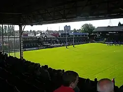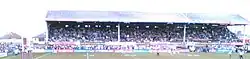 The Family Stand was the only section of the stadium which had a seated area, although there were still areas for standing supporters. The players entered the field from a gateway under the stand and the dugout was also in the Family Stand. The Family Stand contained an area for the media such as local radio stations. It was built after the Second World War, funded by local businesses. The actual design of the stand means that it only ran for two-thirds of that side of the pitch.