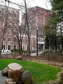 After the war, northern investors such as brothers Joseph and David Richards helped Knoxville recover relatively quickly. The Richards brothers convinced 104 Welsh immigrant families to migrate from the Welsh Tract in Pennsylvania to work in a rolling mill. These Welsh families settled in an area now known as Mechanicsville.[47] The Richards brothers also co-founded the Knoxville Iron Works beside the L&N Railroad, also employing Welsh workers. Later, the site was used as the grounds for the 1982 World's Fair.[48]