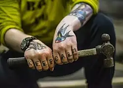 - ^ Schonberger, Nick (8 December 2011). "Hate Or Love? The 10 Best Knuckle Tattoos". Complex.com. Retrieved 4 August 2014.