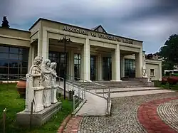 After restoration works for redevelopment, which began in 2004, the former railway station was opened early 2007. The museum consists of 1,965 archaeological, 1,549 ethnographic objects and 5,155 coins.[1] In addition to the exhibition halls, there is a 130-seated conference room and a laboratory. The museum objects are partly exhibited in the museum halls and partly open-air in the museum yard. A steam locomotive and two railroad cars, redesigned as cafeteria and restaurant and situated in front of the museum, serve the visitors.[3]