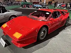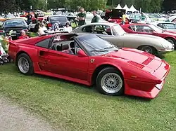 As well, Koenig also offered heavy duty fiberglass wide bodykits, which was popular for cars of the time.[7][12] Perhaps Koenig's most notable project was their work on the successor of the 512 BB, a modified version of the Ferrari Testarossa that debuted in the 1985 Frankfurt Motor Show. It produced 710 bhp, 320 bhp over a stock Testarossa.[13][14][15] This was followed up by the 800 bhp Competition (1988) that was good for 217 miles per hour (349 km/h); its convertible version, the Competition Cabrio (1989), although being less powerful, was good for 198 miles per hour (319 km/h).[16] As Ferrari never offered a convertible because of the required significant amount of strengthening in the chassis required to make up for the lack of upper structure, the conversion cost US$55,600 (equivalent to $141,037 in 2024) alone.[17][18] For those who wanted extra power, there was the Competition Evolution quoted at 1000 PS DIN, claiming a top speed of 230 miles per hour (370 km/h) and an estimated 0 to 60 mph in 3.5 seconds. Koenig would also re-trim the interior to suit the client's specifications.[6] The car's overall cost, including car with fully re-trimmed leather interior and a 1000w 16-speaker Kenwood audio system was reported to cost US$595,900 (equivalent to $1,434,197 in 2024).[16]