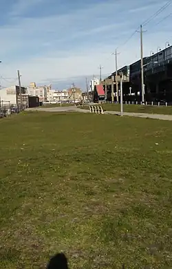 In 2001 construction commenced on a new residential community that revived the name Arverne-by-the-Sea. Comprising single and multi-family homes to the south of Rockaway Freeway, it includes a retail plaza on the southern side of the subway station, adjoining Kohlreiter Square.[1] Before 2001, there was a Joseph P. Addabbo Family Health Center on the southern side of the 67th street subway station, and a synagogue across the street from the health center. The synagogue burned down in 2001, and the family health center moved to a new building on Beach 62nd street after it was built in 2005. The old building was torn down in 2006 during the construction of the retail plaza.