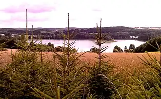 Kojle (Lithuanian: Kalis) is a lake in Suwałki Region, Podlaskie Voivodeship, Poland. It is situated in the Suwaki Landscape Park. It is oval-shaped with numerous bays on the south side. It has a muddy bottom and is overgrown by rushes. It is 17 hectares (42 acres) large, 0.65 kilometres (0.40 miles) long, 0.4 kilometres (0.25 miles) wide and 33 metres (108 ft) deep. Kojle is connected to Perty Lake.
