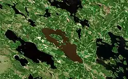 Kokkosaari is the largest island in a lake on an island in a lake in the world. It is located in Kuonanjärvi on the Sääminginsalo island, which has been claimed to be the largest island in Finland. Kokkosaari is almost 2000 m long, with a width of 400–900 m.[1]