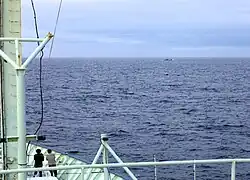In 1952, Iceland declared Kolbeinsey to be a baseline point for the purposes of defining its exclusive fishery limits, originally set at 4 nmi (7 km) from the baseline.[7] Iceland would eventually declare a 200-nautical-mile (370 km) exclusive economic zone (EEZ) in 1975, using Kolbeinsey as the baseline point. Denmark (on behalf of Greenland) objected to the use of Kolbeinsey as a baseline point as doing so gave Iceland control over 9,400 km2 (2,700 sq nmi) of sea area that would otherwise belong to Greenland.[8] A helipad was constructed in 1989[3] and further efforts to reinforce the island were discussed in the Icelandic parliament in the 1990s.[9] However, an agreement was reached in 1997 between Iceland, Denmark and Greenland (which was a party to the agreement in its own capacity) that permanently fixed the EEZ boundary in the area, giving Iceland control over 30 percent of the disputed area, while Greenland would control the remaining 70 percent.[10] Since that agreement, Kolbeinsey has not been relevant to the definition of EEZ boundaries and there were no further efforts to reinforce the island.[11]
