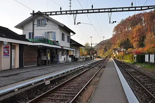 Kollbrunn railway station is a railway station in the Swiss canton of Zürich. The station is situated in the village of Kollbrunn within the municipality of Zell (Töss Valley). It is located on the Tösstalbahn between Winterthur and Rüti ZH