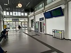 In 2025, the old building of railway station between the platforms was demolished and the passenger waiting room was moved to a smaller building outside the platforms on the edge of the station. The investment in the construction of the new building railway station cost PLN 13 million.[1][2]