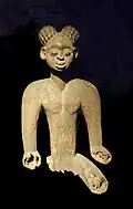 Art within the Kom community is extremely important. Although not much history on their art is easily found, a very significant piece of art, the Afo-A-Kom, is an important story retold by the Kom and is well known among the Kom people. The Afo-A-Kom is a life-size beaded wooden figure said to be the most sacred item in the kingdom. It was stolen in from the Laikom palace in 1966 and then sold to a New York art dealer. The Cameroon Government was aware of the Afo-A-Kom's location in 1973 and immediately demanded that the possessor, the Furman Gallery, return it. This brought about discourse regarding repatriation and started conversations about returning art that was stolen from Africans because of colonialism, and a New York Times article was written. The Afo-A-Kom was eventually sold by the Gallery to a businessman, who returned it to the Kom people.[7]