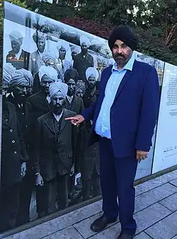 Toor was part of the unveiling ceremony in Mission, BC, on August 16, 2023, of a Komagata Maru interpretive sign at Jack Poole Park.[44] This sign was the result of Toor's April 19, 2021, presentation to Mission council requesting recognition of the Komagata Maru, given the importance of the South Asian community in Mission's history.[45] Mission City Council and the Mission School Board also approved a display board that is to be used to teach Mission students about the Komagata Maru incident, and about the need for respecting and valuing people of different cultures.[46][47]
