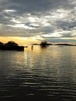 Part of the Ssese Islands archipelago, Koome Island is located in Mukono District, in northwestern Lake Victoria, in Uganda. The island is separated from the Bugala group of Ssese Islands by the Koome Channel. Koome is the largest island in the northeastern group. Other islands in the same group include: Damba Island, Lwaje Island, Ngamba-Chimpanzee Island, Bulago Island, Kayaga Island and others. This location lies approximately 63 kilometres (39 mi), by water, northeast of Kalangala. [1] Koome also lies approximately 35 kilometres (22 mi), by water, southeast of Entebbe, the nearest large town. [2] The coordinates of Koome Island are:00 05 06S, 32 45 00E (Latitude:-0.0850; Longitude:32.7500).