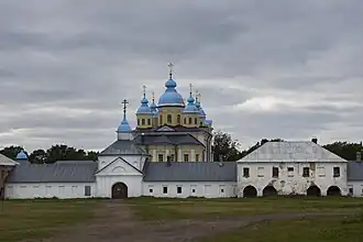 Konevsky Monastery (Russian: Рождество-Богородичный Коневский монастырь (as it is written on the seal of the monastery), Finnish: Konevitsan Jumalansynnyttäjän syntymän luostari) is a Russian Orthodox monastery that occupies the Konevets Island in the western part of the Lake Ladoga, Leningrad Oblast, Russian Federation. It is often regarded as the twin monastery with the Valaam Monastery, also located on an island group in the same lake.