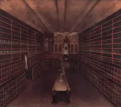 In 1708 Becker passed the pharmacy on to his son, Gottfried Becker, who succeeded his father as court pharmacist in 1712. The pharmacy was completely destroyed in the Copenhagen Fire of 1728. It was temporarily moved to Amagertorv[1] until an extravagant new building at the old site could be inaugurated on 15 April 1737.