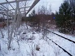 Konin–Pątnów railway began at Konin railway station, branching off to the left from Warsaw–Kunowice railway. It then ran northward parallel to National Road No. 25, passing near the Konin Power Plant, before turning west and ending beyond Pątnów railway station, north of Gosławskie Lake.[1] From approximately the 6th kilometer of the line, the electrified tracks of Konin Mining Railways run parallel, sharing a common loading and unloading point at the Przesmyk-Gaj junction.[1] Until 1996, the line passed the Lubstów Main Line viaduct, the Pątnów Power Plant, and changed direction northward again, terminating in Kazimierz Biskupi.[2][3]