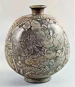 - ^ "분청사기 박지철채모란문 자라병" [Buncheong Turtle-shaped Bottle with Sgraffito Peony Design in Underglaze Iron]. Korea Heritage Service (in Korean). Retrieved February 5, 2024.