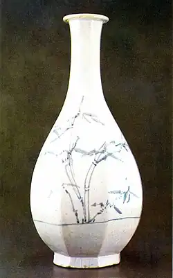 - ^ "백자 청화죽문 각병" [White Porcelain Octagonal Bottle with Bamboo Design in Underglaze Cobalt Blue]. Korea Heritage Service (in Korean). Retrieved February 5, 2024.