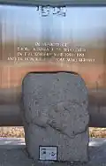 A central walk-way leads to a semi-enclosed contemplative space. A boulder from a Korean battlefield is a focal commemorative point with the words "Peace and Independence" inscribed in Korean. Inside are images, maps and text etched into stainless steel panels telling the story of the Australians who served in the Korean War, on the left telling the general story and on the right telling of particular involvement of the Navy (nine ships and an air group), Army (3 RAR, and elements of 1 & 2 RAR), and Air Force (77 Squadron and other elements).