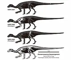 - ^ Huh, M.; Kim, J.G. (2010). "Koreanosaurus boseongensis" (in Korean). 한국고생물학회 정기총회 및 학술발표회. pp. 21–26.
