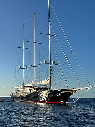Koru is a luxury custom superyacht owned by Jeff Bezos, the founder of Amazon. The vessel was built in the Netherlands by Oceanco starting in 2021, and delivered in April 2023.[3][4][5] It is a three-masted sailing yacht 127 meters (417 ft) long with a navy blue hull. The superyacht is reported to have cost at least US$500 million, and to require annual maintenance costs of at least $30 million.[6][7][8][9] When commissioned, the yacht was the second-largest sailing yacht in the world, after Andrey Melnichenko's Sailing Yacht A.
