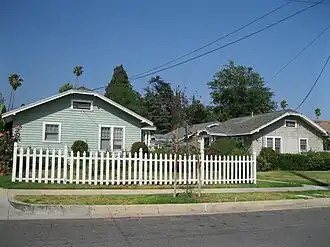 Kosy Knook Court is a bungalow court located at 830 Brooks Avenue in Pasadena, California. The court was constructed in 1922 and designed by G. W. Tombleson. The court includes five identical homes arranged around a central path; it originally included two garages as well, which have since been removed. The homes were designed in the Colonial Revival style and feature entrance porticos, windows with multiple panes, wood siding, and jerkinhead roofs.[2]