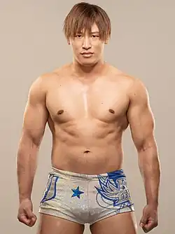 On June 1, 2010, Ibushi entered his second Best of the Super Juniors tournament. After winning his block with six victories out of seven matches, Ibushi defeated Ryusuke Taguchi to advance to the semifinals of the tournament, where he was once again defeated by Devitt.[43][44][45] On October 11, 2010, Ibushi returned to New Japan at Destruction '10 and teamed with his regular DDT partner Kenny Omega to defeat Apollo 55 (Prince Devitt and Ryusuke Taguchi) for the IWGP Junior Heavyweight Tag Team Championship, after Ibushi pinned Devitt.[46] As a result of the pinfall victory, Ibushi was granted a shot at Devitt's IWGP Junior Heavyweight Championship at New Japan's biggest event of the year, Wrestle Kingdom V on January 4, 2011.[47][48] At the event Ibushi was unsuccessful in his attempt to win the title.[49][50] On January 23 at Fantastica Mania 2011, a New Japan and Consejo Mundial de Lucha Libre co–promoted event in Tokyo, Ibushi and Omega lost the IWGP Junior Heavyweight Tag Team Championship back to Devitt and Taguchi.[51][52] On May 26, Ibushi entered New Japan's 2011 Best of the Super Juniors tournament. After losing his first two-round robin stage matches, Ibushi came back with a six match win streak to finish first in his block and advance to the semifinals of the tournament.[53] On June 10, Ibushi first defeated Davey Richards in the semifinals and then Ryusuke Taguchi in the finals to win the 2011 Best of the Super Juniors tournament and earn a shot at Prince Devitt's IWGP Junior Heavyweight Championship.[54] On June 18 at Dominion 6.18, Ibushi defeated Prince Devitt to win the IWGP Junior Heavyweight Championship for the first time.[55][56] Ibushi made his first defense of the title on July 24, defeating Devitt in a rematch at Ryōgoku Peter Pan 2011, and his second on August 1, defeating Devitt's tag team partner Ryusuke Taguchi.[57][58] Ibushi then attempted to repeat Devitt's feat of holding both of New Japan's Junior Heavyweight Championships simultaneously, but on August 14, the Golden☆Lovers failed in their attempt to regain the IWGP Junior Heavyweight Tag Team Championship from Apollo 55.[59] On September 12, Ibushi was stripped of both the IWGP Junior Heavyweight Championship and the KO-D Tag Team Championship, after he was sidelined with a dislocated left shoulder.[60]