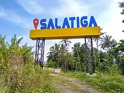 Salatiga (Javanese: ꦯꦭꦠꦶꦒ) is a city in Central Java province, Indonesia. It covers an area of 54.98 km2 (21.23 sq mi) and had a population of 192,322 at the 2020 Census;[3] the official estimate as at mid 2024 was 198,971 (comprising 98,571 males and 100,400 females).[2] Located between the cities of Semarang and Surakarta, and administratively an independent city enclaved within Semarang Regency, it sits at the foot of Mount Merbabu (3,142 m (10,308 ft)) and Mount Telomoyo, and has a relatively cool climate due to its elevated position. Salatiga is a part of the Semarang metropolitan area.