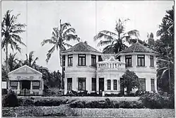 Since 1818 uprising against the British colonial government, Uva area was suffering from the ravages of British military actions. It is said that British rulers had almost neglected Uva's economic, transport and educational development.[3] Therefore, some part of Badulla area was also in rural and forested state without proper development. Meanwhile, a youth named Don Carolis Kotalawala, born in 1847 from Undugoda, Raigam Korale area decided to migrate to Badulla and began his career as a good transporter. He first introduced a fleet of double bullock carts to transport goods through the jungle maze and personally supervised the transport network which was stalked by bandits and robbers. The success of his career led him into well known merchant and land proprietor in the area. Being a notable person in the region he was conferred the title Muhandiram and married to Sudu Menika Wijekoon, a lady of a high class family from the area. A stately house put up at Hindagoda off Badulla became their family residence and which was later known as Kotalawala Walawwa.[3]