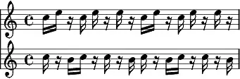 Polos 1 2 . 1 2 . 1 2 . 2 1 . 2 1 . 2 etc... Sangsih 4 . 3 4 . 3 4 . 3 4 3 . 4 3 . etc... Pokok 1 . . . 2 . . . 3 . . . 2 . . . etc...