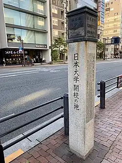 - 1985 (1985) - Nihon University and Kokugakuin University jointly erected a monument at the site of the Imperial Academy (3-5-5 Chiyoda-ku Iidabashiin front of the Tokyo Kusei Kaikan).