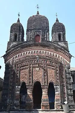 The temple has five ratnas (pinnacles) – four at the four corners of the roof and one in the middle – which classifies it as a pancha-ratna[1] style temple. The ratnas or pinnacles of this temple are similar to the rekha deul. The temple gradually tapers towards the sloping roof. Both the length and breadth of the temple are 15 ft. 9 in. and about 30 ft. in height.[1][2]