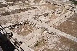 During the Diocletianic Persecution, Philoneides, the Bishop of Kourion, was martyred. In 341 CE, the Bishop Zeno was instrumental in asserting the independence of the Cypriot church at the Council of Ephesus. In the later-4th century (365-370), Kourion was hit by five strong earthquakes within a period of eighty years, as attested by the archaeological remains throughout the site, presumably suffering near-complete destruction.[13] In the late fourth and early fifth centuries, Kourion was reconstructed, though portions of the acropolis remained abandoned. The reconstruction included the ecclesiastical precinct on the western side of the acropolis. In 648-49, Arab raids resulted in the destruction of the acropolis, after which the centre of occupation was relocated to Episkopi, 2 km to the northeast. Episkopi was named for the seat of the bishop (Episcopus).[11][14][15]