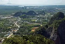 Krabi (Thai: กระบี่, pronounced [krā.bìː]) is the capital of and main town in Krabi Province (thesaban mueang), on the west coast of southern Thailand, where the Krabi River flows into Phang Nga Bay. The town lies 650 km (400 mi) south of Bangkok, and as of 2020, has a population of 32,644. As in much of southern Thailand, the local economy centres largely on tourism.