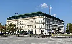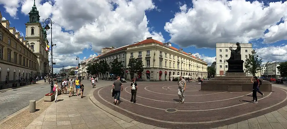 Krakowskie Przedmieście (Polish) (Polish pronunciation: [kraˈkɔfskʲɛ pʂɛdˈmjɛɕt͡ɕɛ] ⓘ, lit. 'Kraków Fore-town') is one of the best known streets of Poland's capital Warsaw, surrounded by historic palaces, churches and manor-houses. It constitutes the northernmost part of Warsaw's Royal Route, and links the Old Town and Royal Castle (at Castle Square) with some of the most notable institutions in Warsaw, including, proceeding southward, the Presidential Palace, Warsaw University, and the Polish Academy of Sciences headquartered in the Staszic Palace.[1] The immediate southward extension of the street along the Royal Route is New World Street.