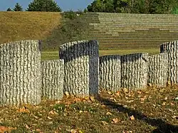 In the area near the mass graves, a memorial complex was built in the form of several columns of stone sculptures, which were made to resemble felled trees. This is a symbol of the sudden end of the lives of the people of Kraljevo who were executed in 1941. At the places of mass graves, earthen mounds covered with grass were erected. The central monument, together with the auditorium, forms an amphitheater space intended for the holding of special events.[2]