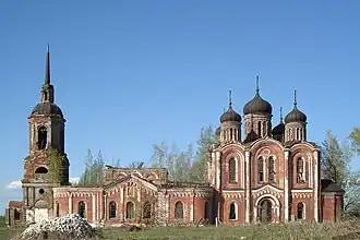 In 1860-1863, the stone church was dismantled and re-built in a larger size. In 1866-1867, the refectory of the church was also disassembled and re-built. The architecture of the new five-domed church was described as magnificent and graceful. The church had three side chapels—the main one being the Trinity altar, located in a warm refectory. The other two were the chapels of Saint Nicholas and the Theotokos of Vladimir.