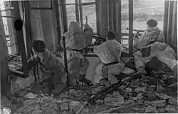 Fedyuninsky's 2nd Shock Army and General Ivan Maslennikov's 42nd Army fell on the sector of Obergruppenführer Felix Steiner's III (Germanic) SS Panzer Corps, hitting the area of the 9th and 10th Luftwaffe Field Divisions. By the third day of the offensive, the 2nd Shock Army broke through the German lines with a penetration 23 kilometers wide.[2] The Luftwaffe units crumbled quickly, and Army Group North fell back to new positions along the Narva river in Estonia.[4] In a key Soviet assault on January 19, the 63rd Guards Rifle Division seized German positions to the front of Krasnoye Selo.[4] On January 19, the 2nd Shock Army took Ropša and the 42nd Army liberated Krasnoye Selo.
