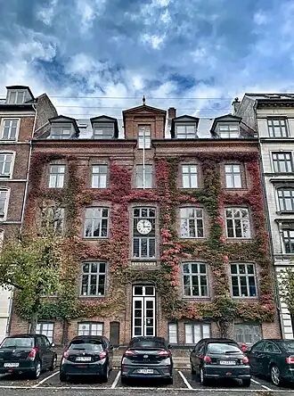 The school was established on 15 August 1872 by C.P.J. Krebs, who had been the headmaster of Metropolitanskolen until 1871. Initially, the school was run out of Krebs' own home on Sortedam Dossering. It soon moved to a location on Tordenskjoldsgade in central Copenhagen and then to Nørregade 20. In 1878 the school secured funding to construct its own building at Stockholmsgade 5.[6] It was designed by architect Charles Abrahams. The school officially moved into the building on 17 September 1878. Stockholmsgade 5 contained all of the school's programs until 1959, when it began expanding into other buildings. Today, the school's campus consists of Stockholmsgade 5, 7, and 9, as well as a smaller pavilion.[6]